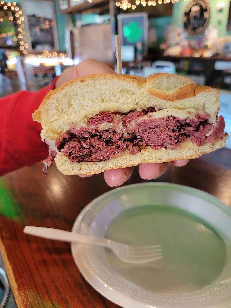 Great food specials!! Loaded pastrami sandwich $12 we split w mountain of delish f/f..Our beer-ista Pat,was friendly,quick and awesome!! Our beer was served in frosty delicious glass mugs!!